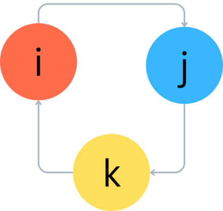 $$ki = j, ij = k, jk = i, ik = -j, ji = -k, kj = -i .$$